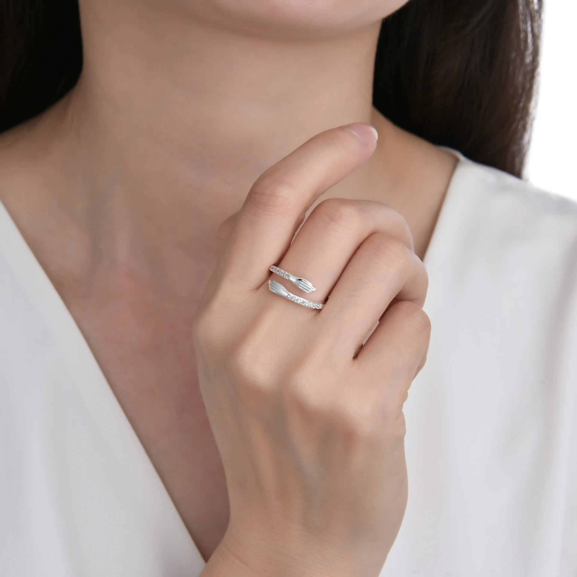 Anillo Ajustable con Cristal de Plata 925 Importado, Manos con detalle de Circones. Tiene alrededor de 1.8 gramos