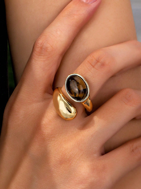 Anillo Ajustable Dorado Importado con detalle Simil Piedra