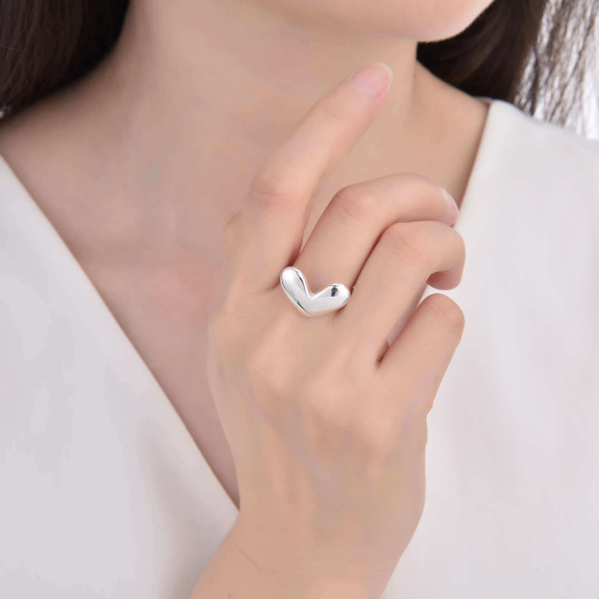Anillo Liso Plata 925 Importado, Ajustable Corazon estilo Inflado. Tiene alrededor de 4.6 gramos