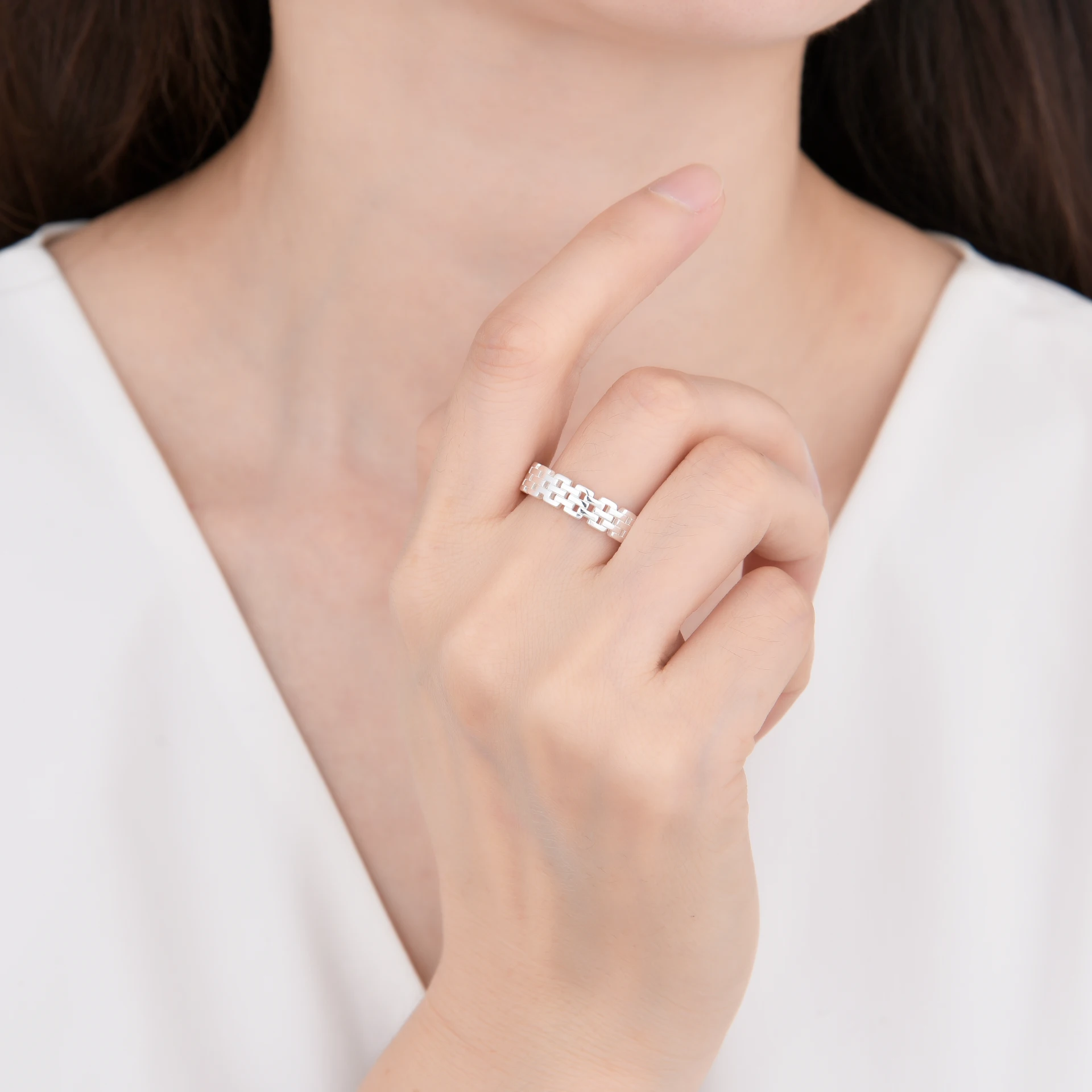 Anillo Liso Plata 925 Importado, Eslabones. Tiene alrededor de 3.3 gramos