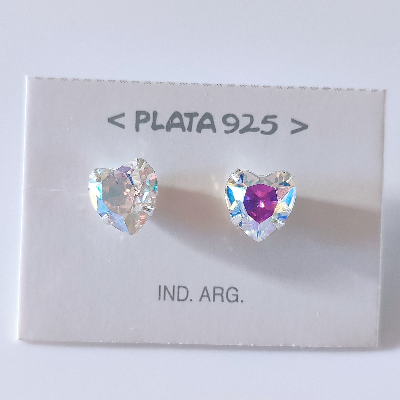 Aros con Cristal de Plata 925 Importada, en forma Corazon 8mm con Cristal Checo.