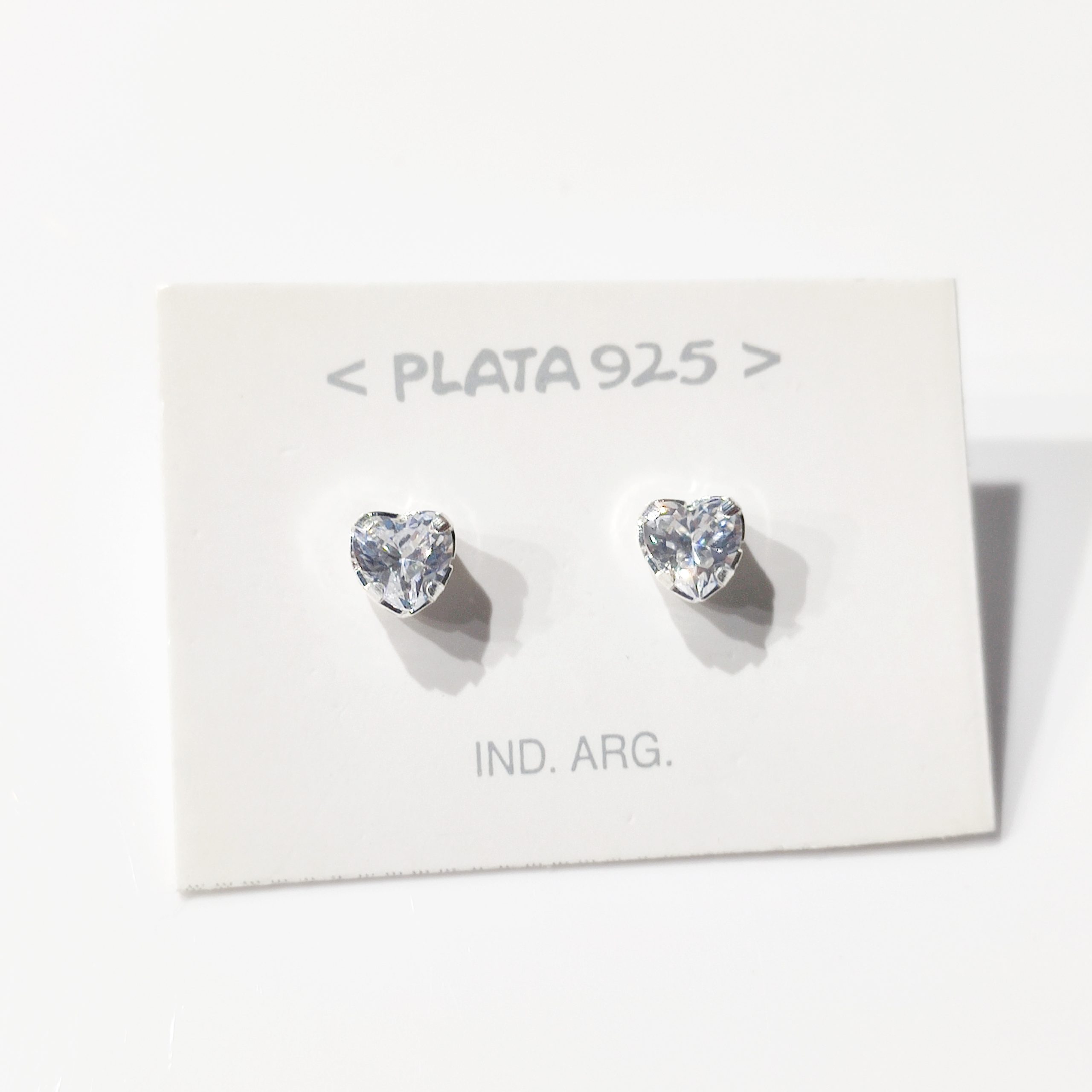 Aros con Cristal de Plata 925 Importada, en forma Corazon 6mm con Cristal.