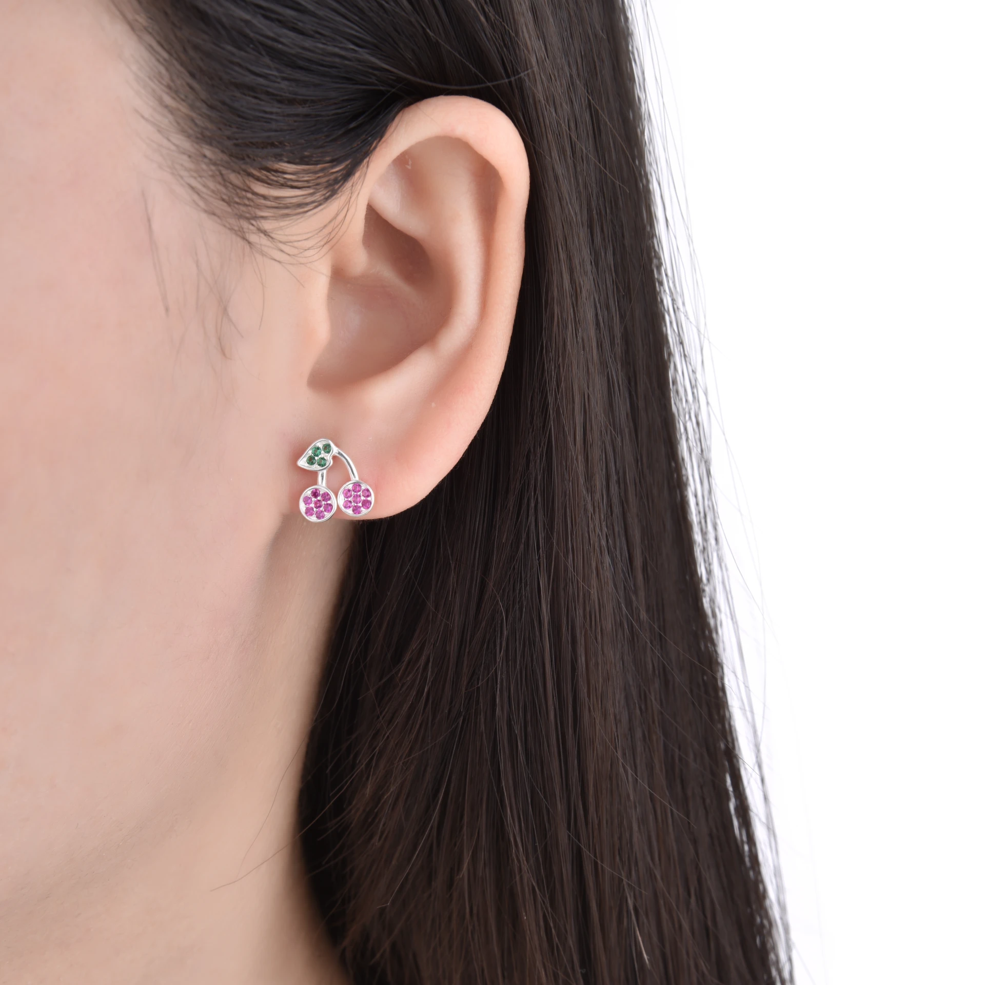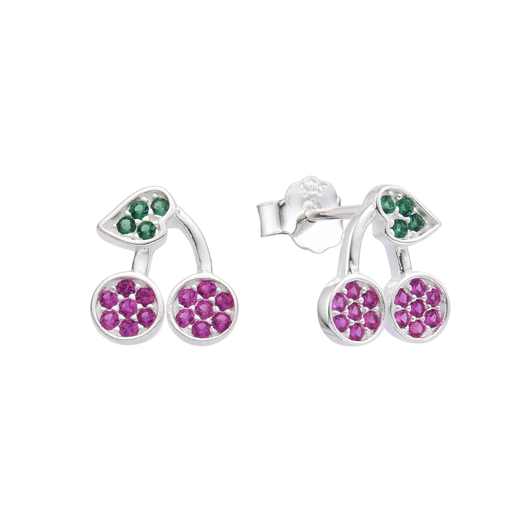 Aros con Cristal de Plata 925 Importada, Cereza con detalle de Cristal. Tiene alrededor de 1.6gr