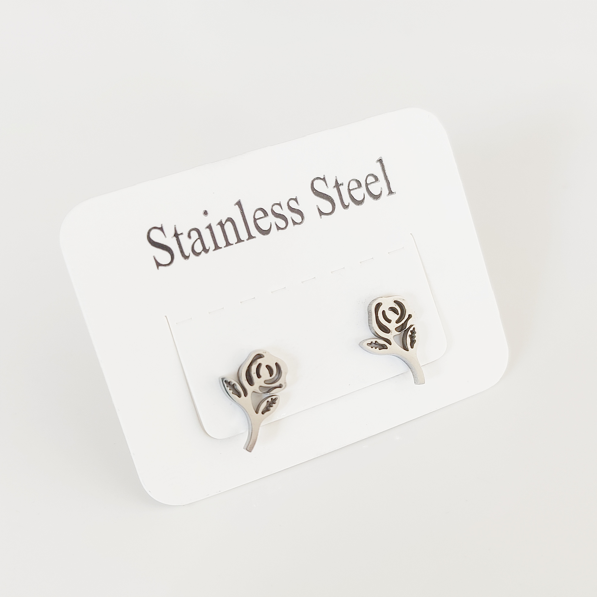 Aros de Acero Quirurgico Importados, Rosa con Tallo.