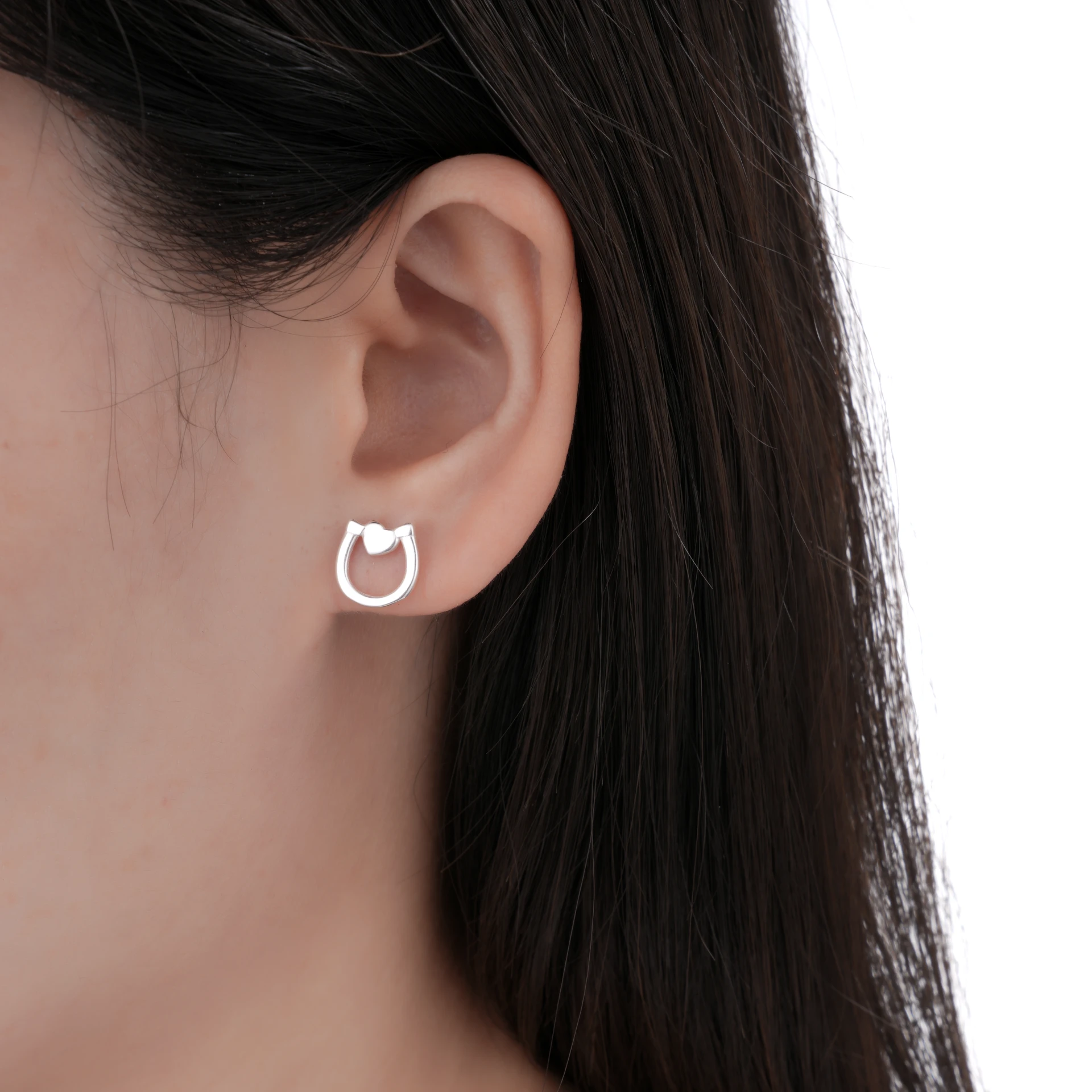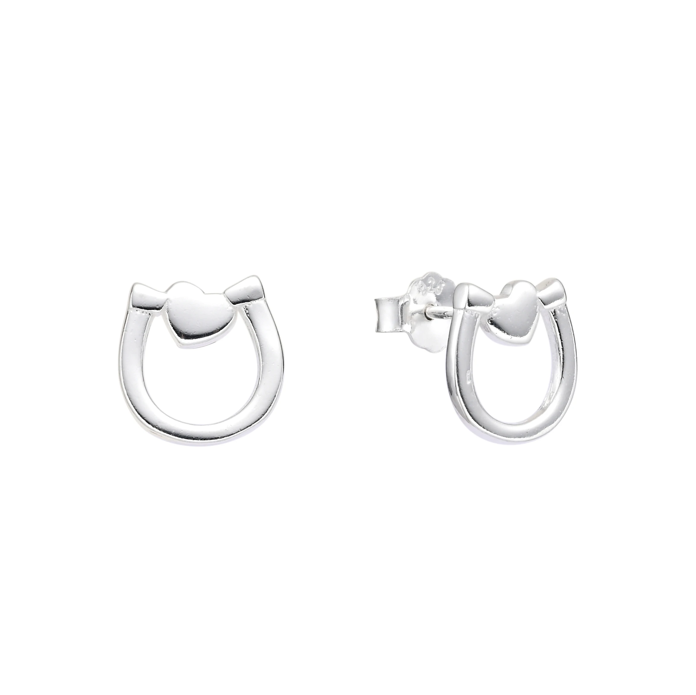 Aros Lisos de Plata 925 Importado, con forma de Herradura con detalle de Corazon. Tiene aproximadamente 1.5gr