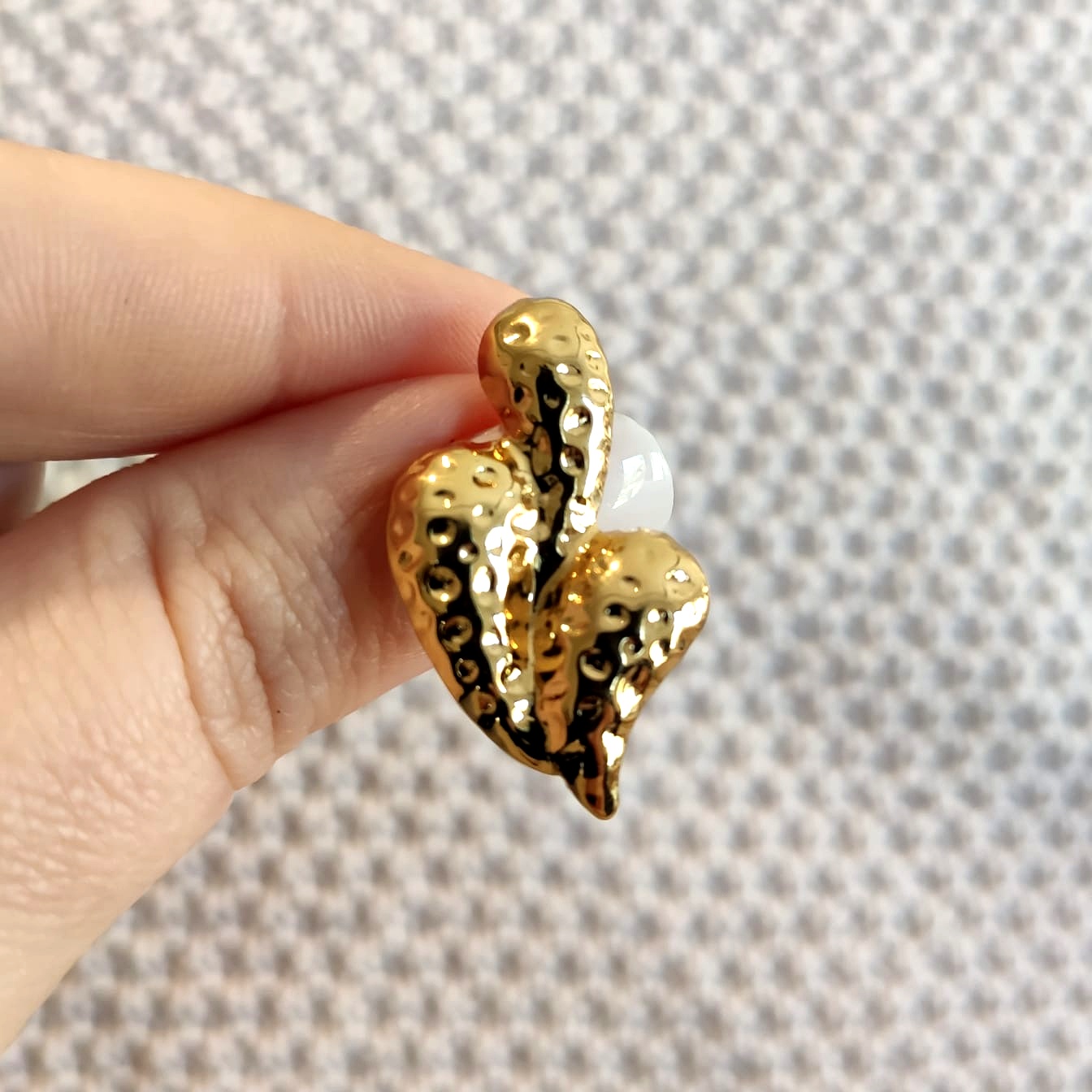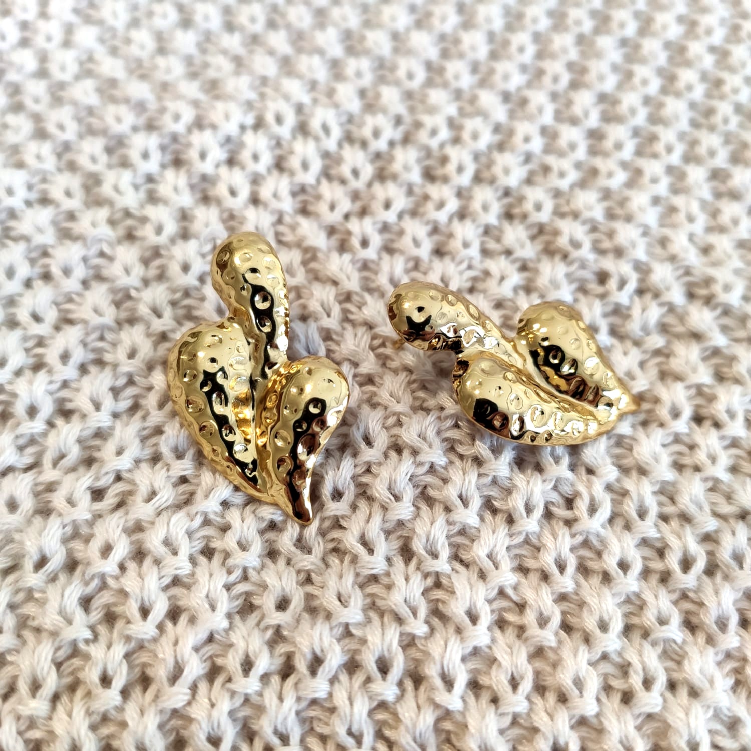 Aros Pasantes Acero Dorado Importados, Estilo Inflado Triple Gota con detalle con cierre mariposa.