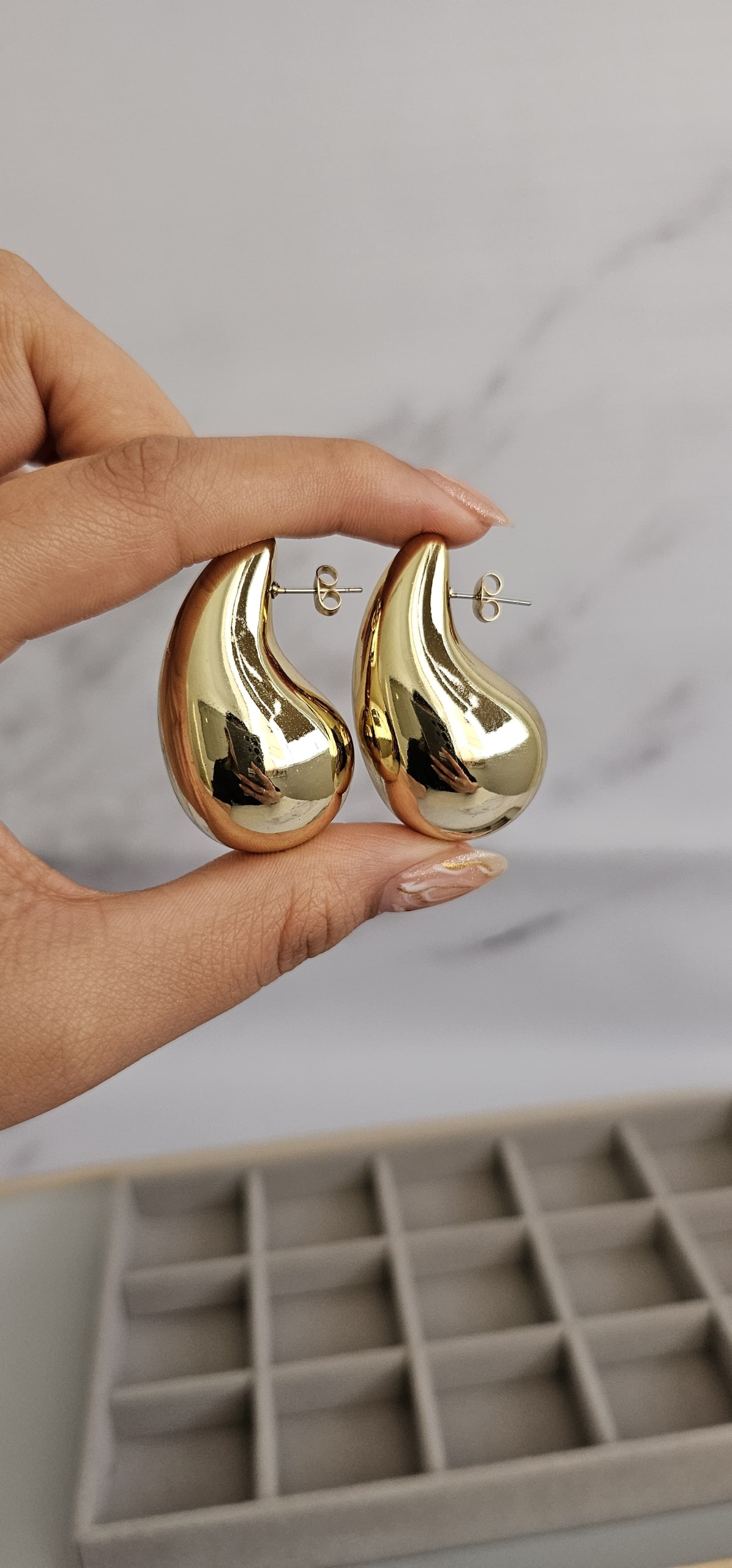 Aros Pasantes Lisos de Acero Bañado en Oro Importados, Gota XL con cierre mariposa. Mide aproximadamente 45mm