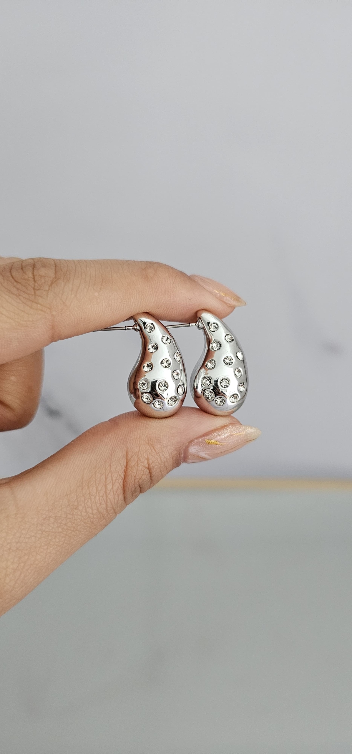 Aros Pasantes Lisos de Acero Quirurgico Importados, Gota con detalle Zircon y cierre mariposa. Mide aproximadamente 25mm