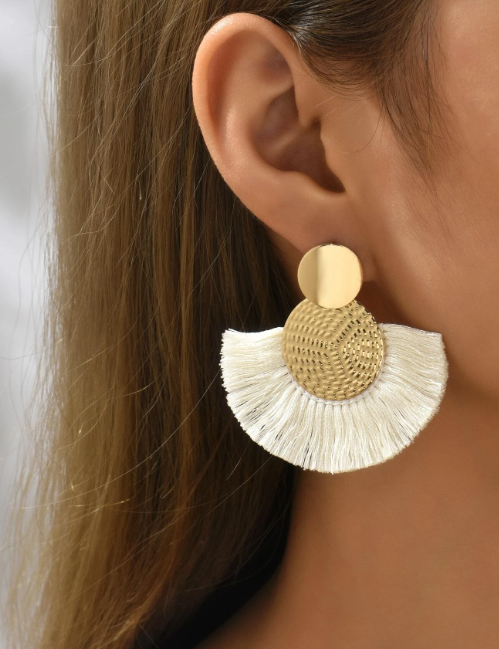 Aros Pasantes Fantasia Laton Importados, con detalle Flecos Cierre Mariposa.