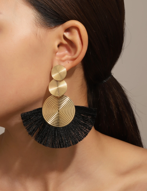 Aros Pasantes Fantasia Laton Importados, con detalle Flecos Cierre Mariposa.