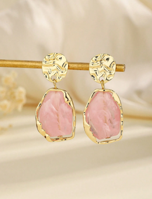 Aros Pasantes Fantasia Laton Importados, con detalle Simil Piedra Cierre Mariposa.