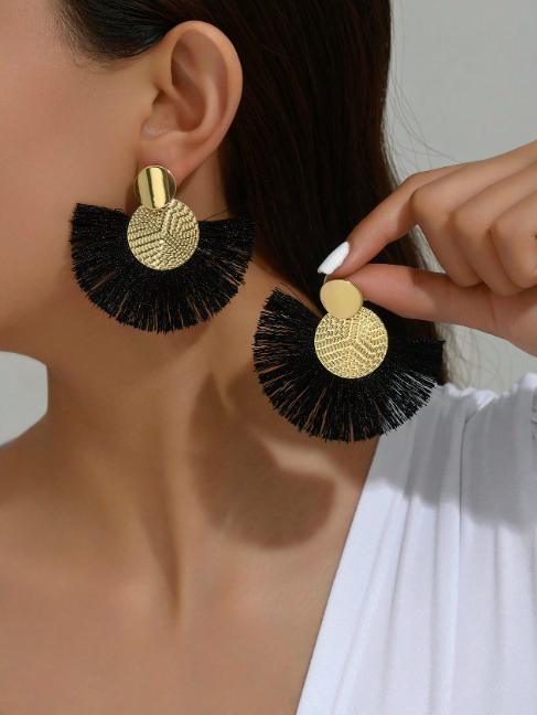 Aros Pasantes Fantasia Laton Importados, con detalle Flecos Cierre Mariposa.