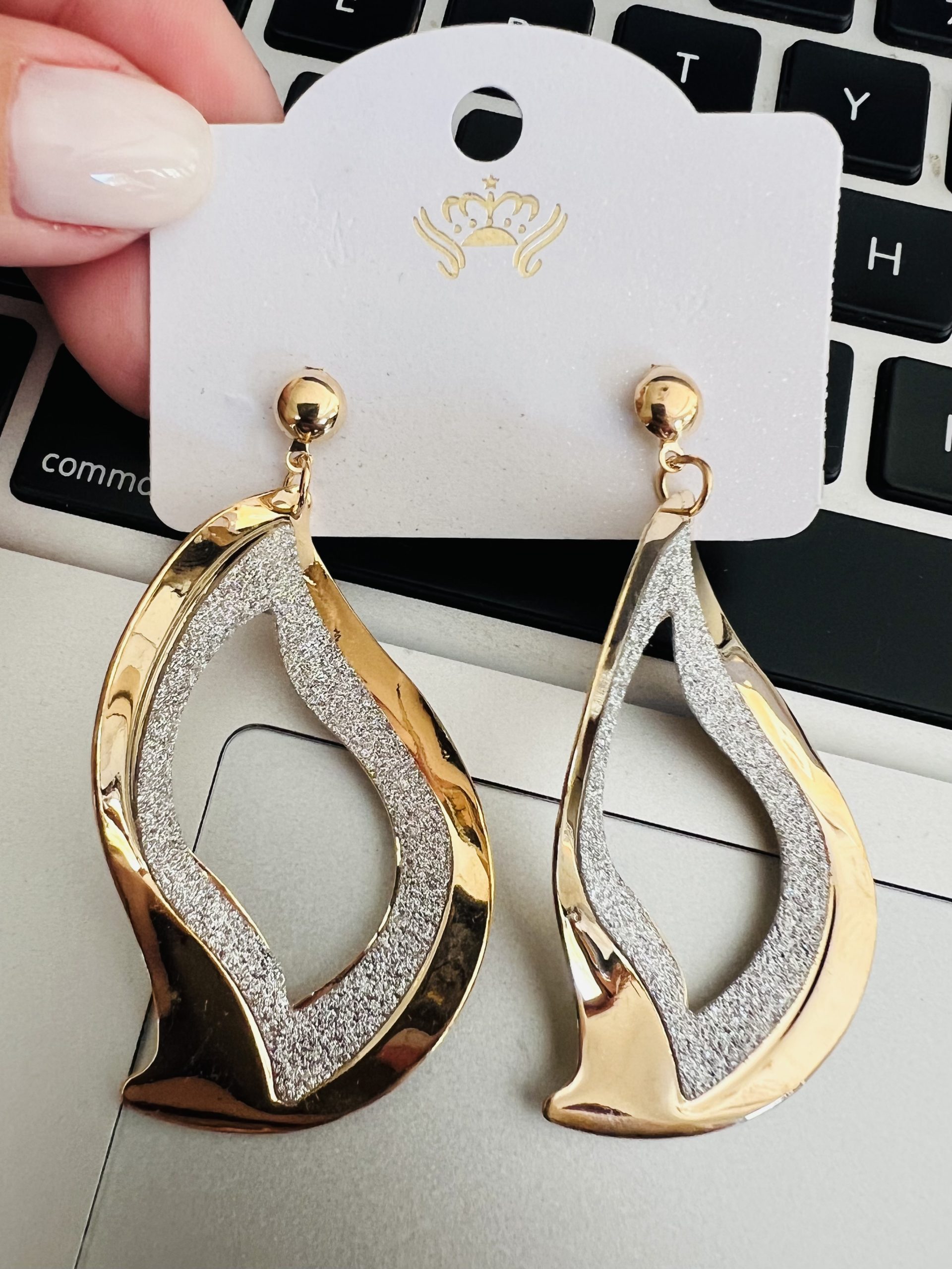 Aros Pasantes Fantasia Laton Importados, Bicolor con detalle Cierre Mariposa.
