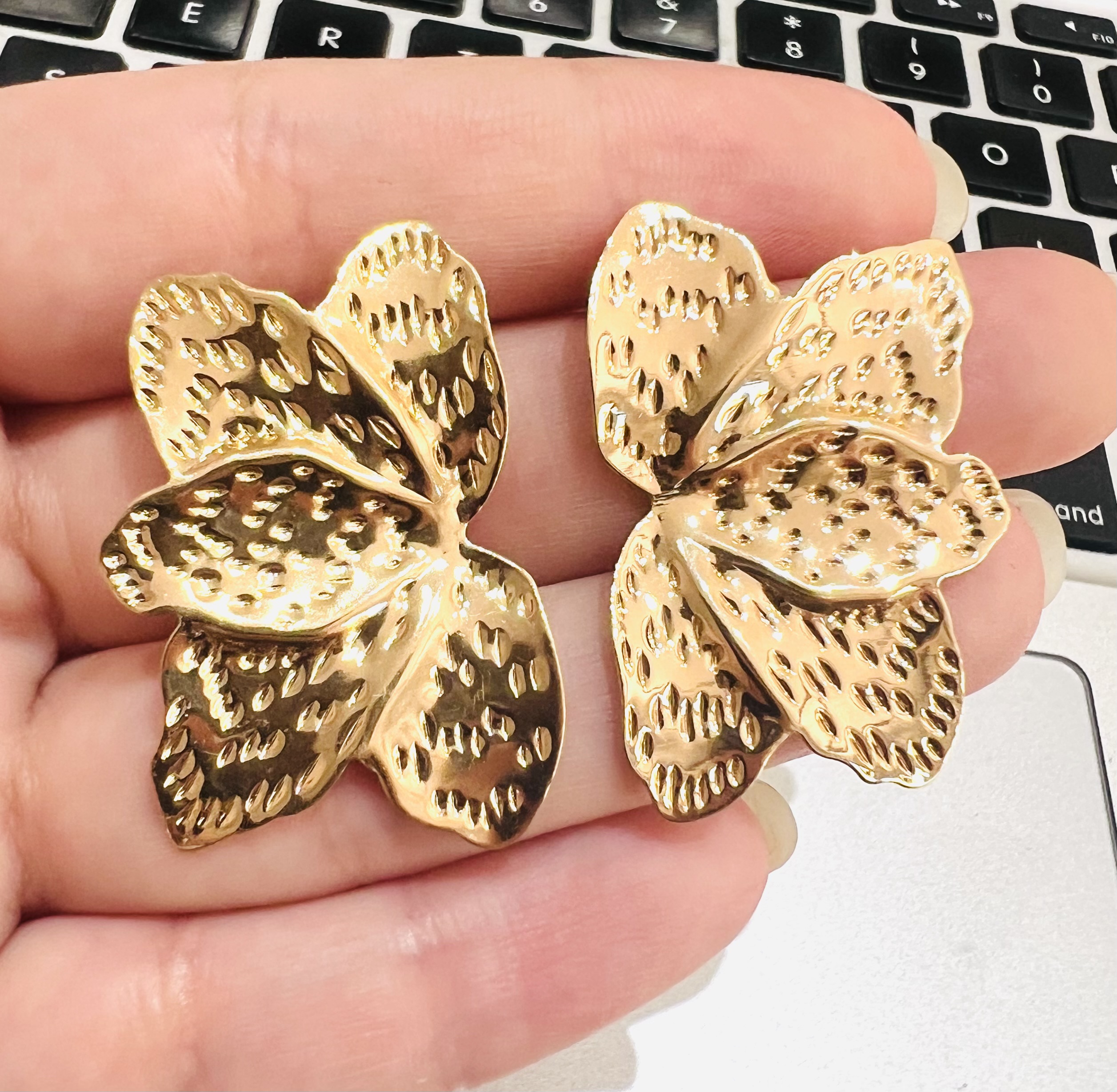 Aros Pasantes Fantasia Dorado Importados, Liso con Cierre Mariposa.