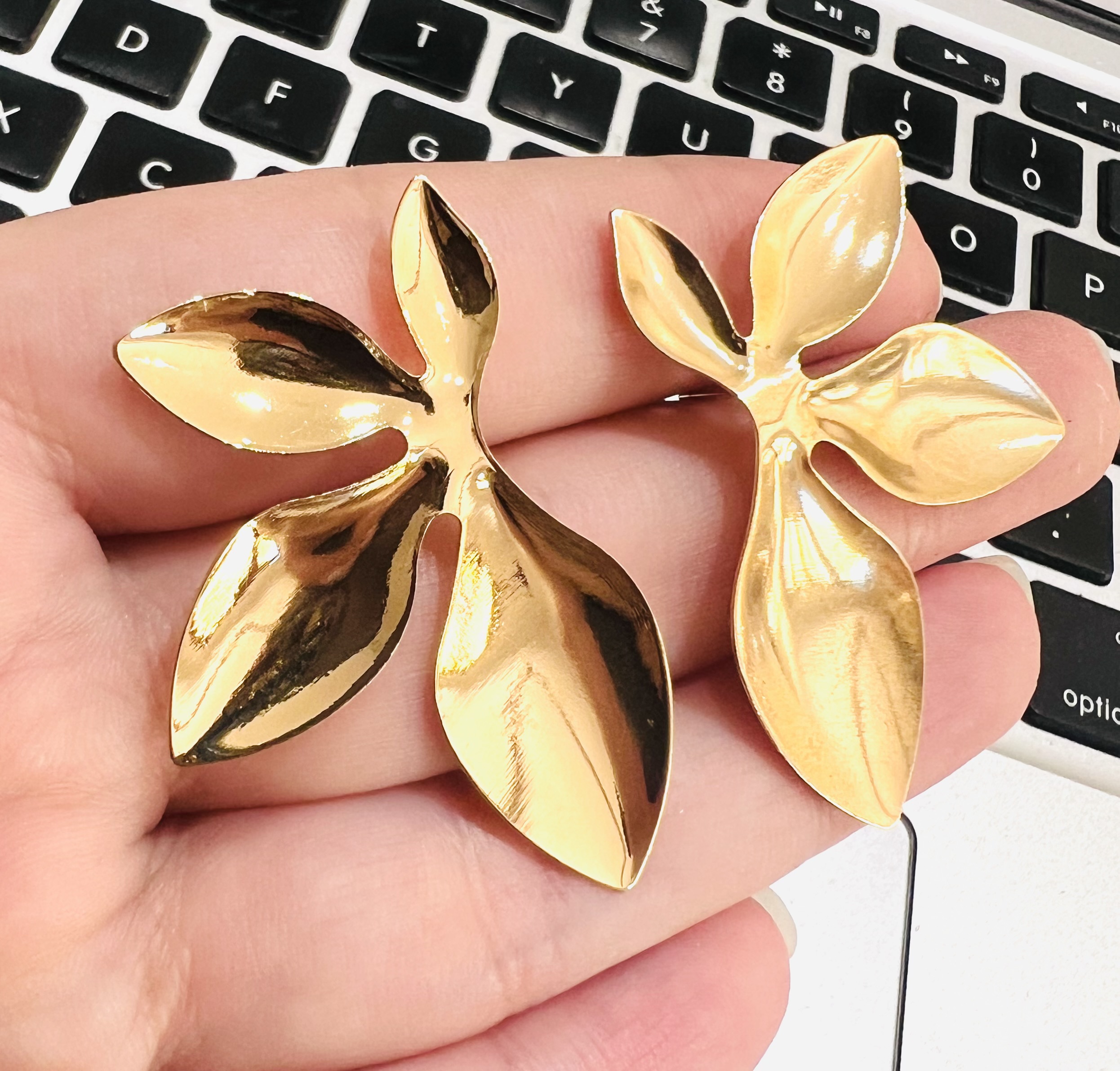 Aros Pasantes Fantasia Dorado Importados, Liso con Cierre Mariposa.