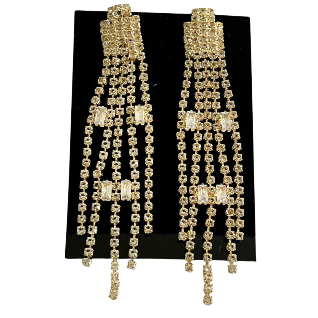 Aros Pasantes Fantasia Bañado en Oro Importados, Largos con  detalle de Zircon y cierre mariposa. Mide aproximadamente 75mm
