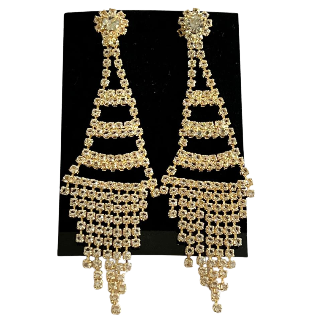 Aros Pasantes Fantasia Bañado en Oro Importados, Largos con  detalle de Zircon y cierre mariposa. Mide aproximadamente 75mm
