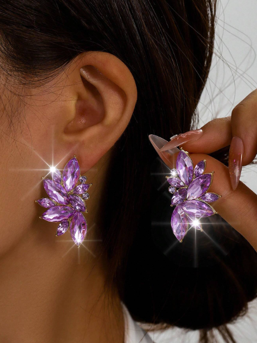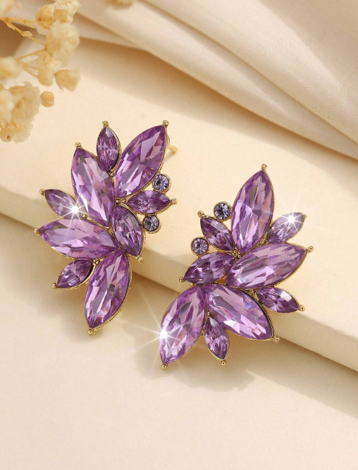Aros Pasantes Fantasia Dorado Importados, con detalle de Gemas Violeta