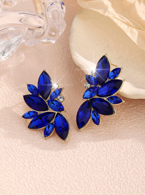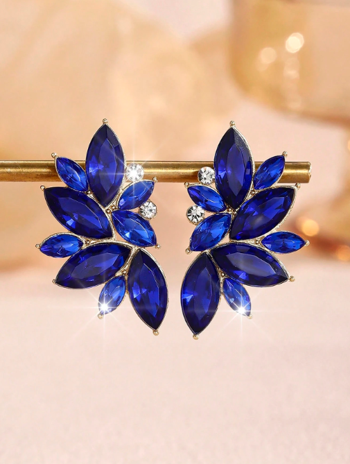Aros Pasantes Fantasia Dorado Importados, con detalle de Gemas Azul