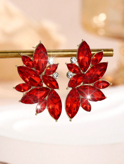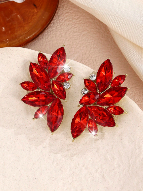 Aros Pasantes Fantasia Dorado Importados, con detalle de Gemas Tonos Rojos