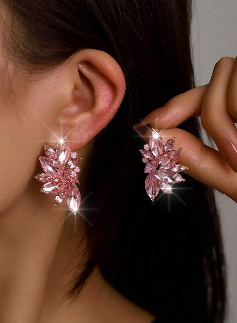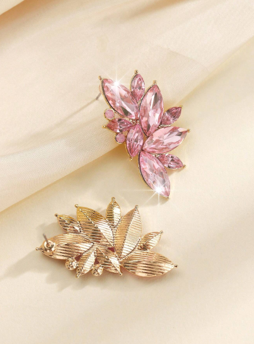 Aros Pasantes Fantasia Dorado Importados, con detalle de Gemas Rosado