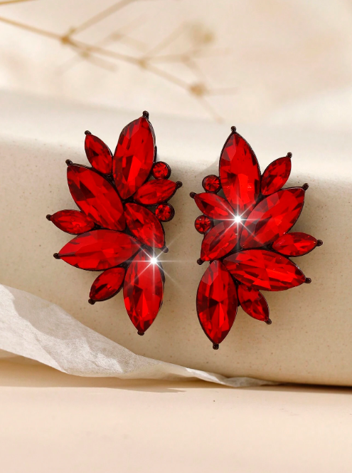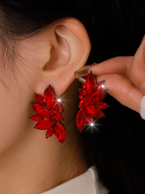 Aros Pasantes Fantasia Negro Importados, con detalle de Gemas Rojas