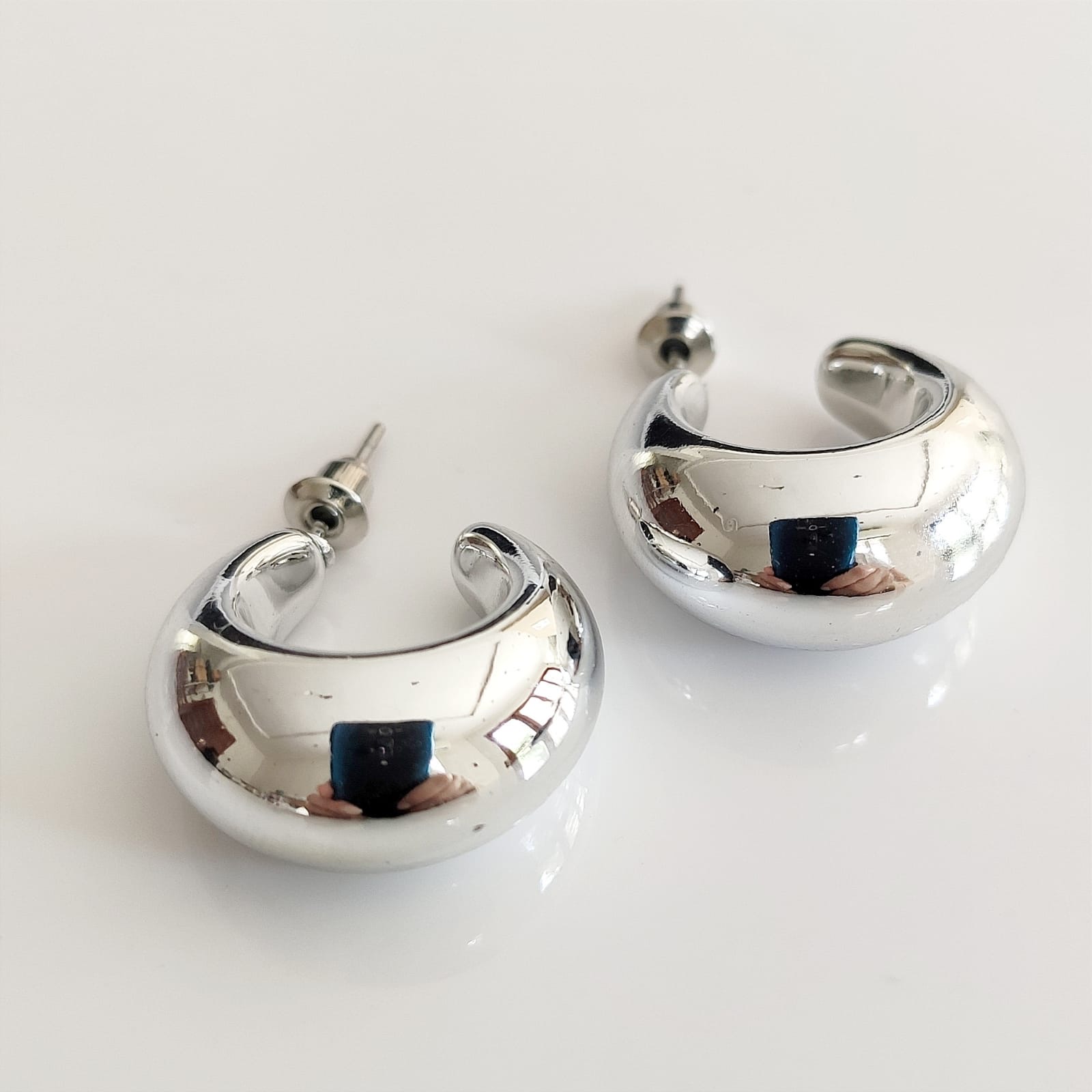 Aros Pasantes Fantasia Plateado Importados, Estilo Inflado Cierre Mariposa.