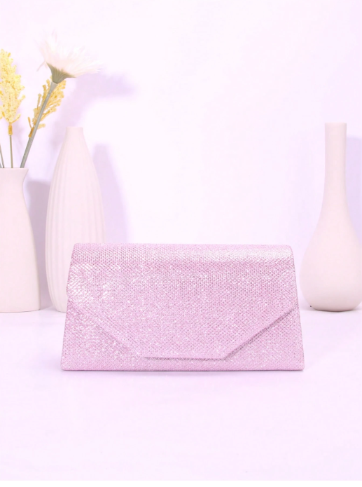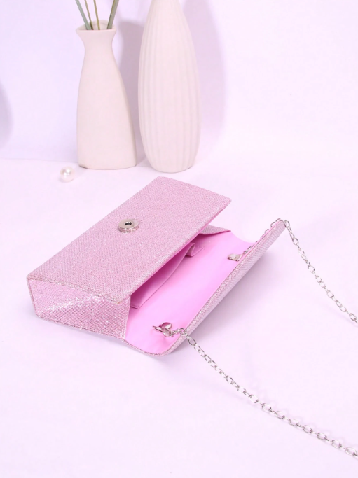 Cartera Estilo Cartera de Fiesta Rosada con detalle Plateado de Calidad Premiun.