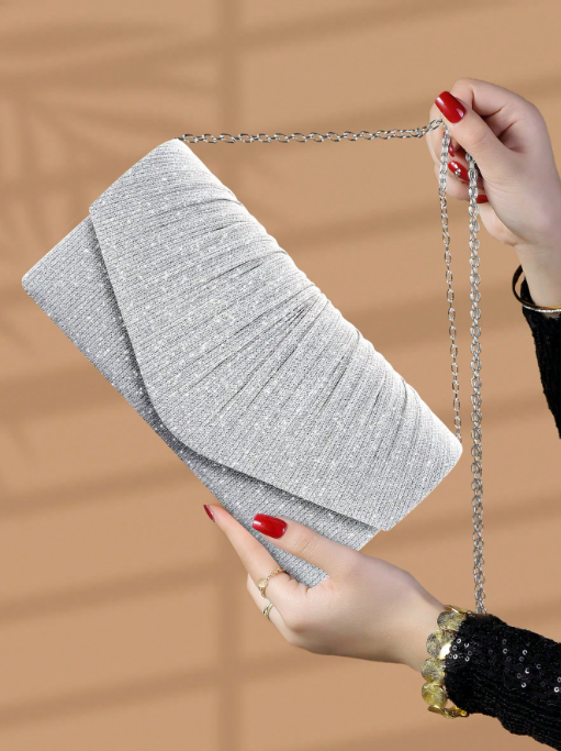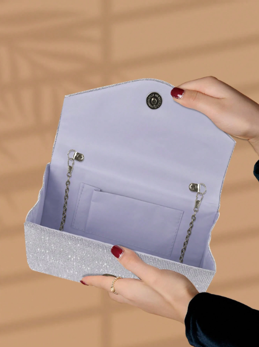 Cartera Estilo Cartera de Fiesta Plateado con detalle Plateado de Calidad Premiun.