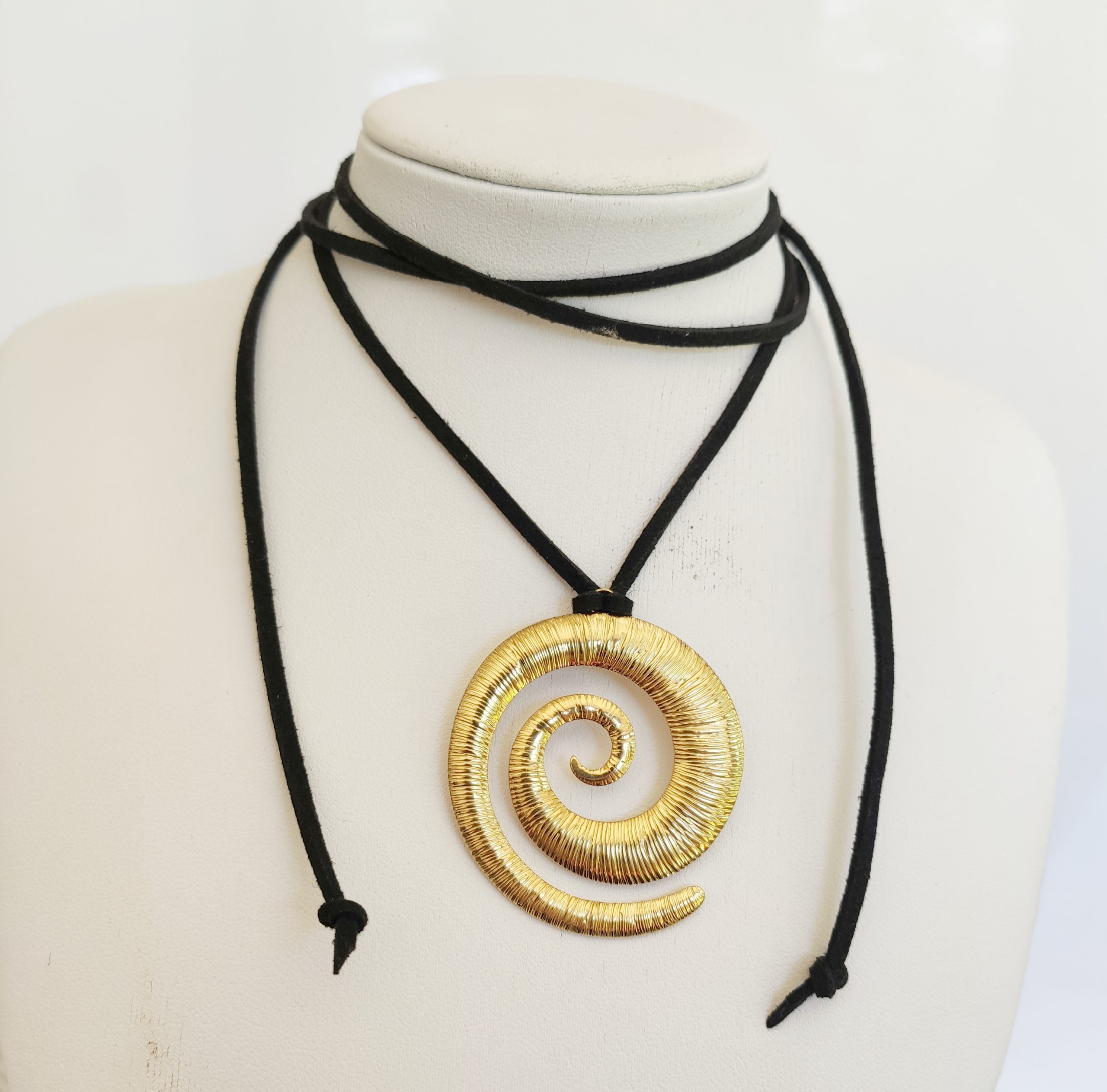 Choker Fantasia Dorado Importados, con Dije Espiral con detalles y Cordon de Gamuza de 1,5mts.