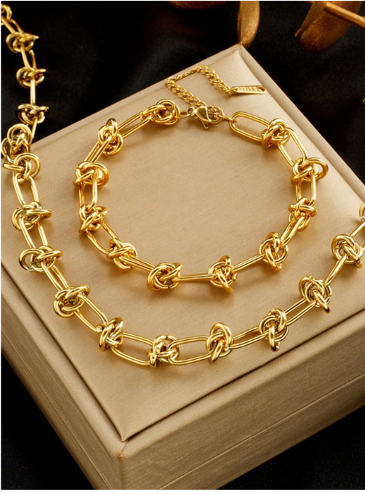 CONJUNTO ACERO BAÑADO EN ORO