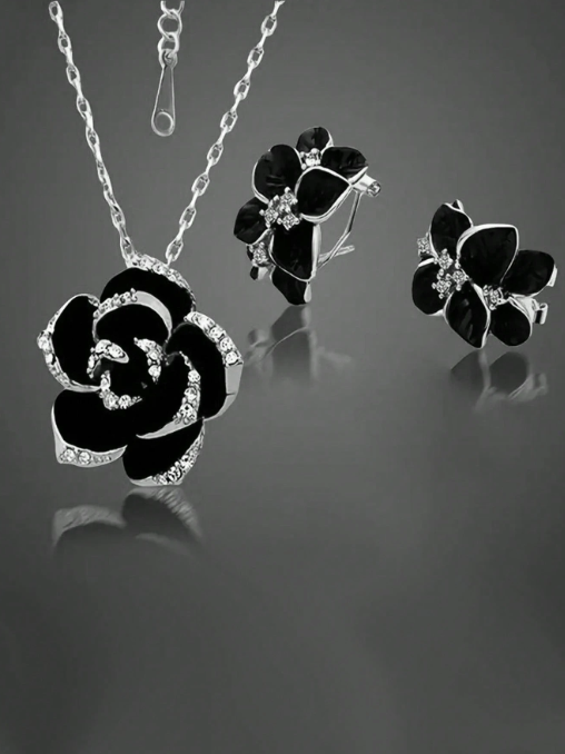 Conjunto de Collar y Aros Esmaltado con detalle de Zircon Fantasia Plateado Importados.