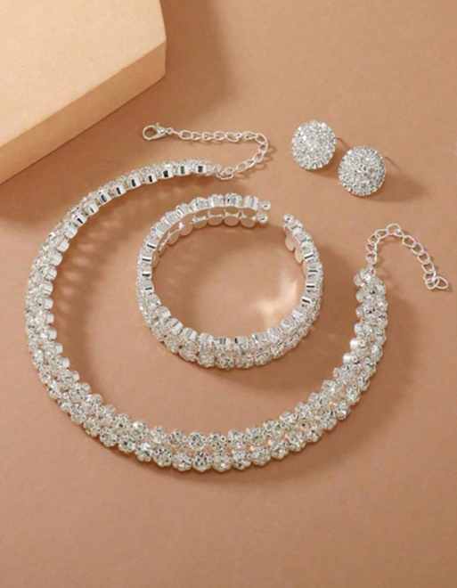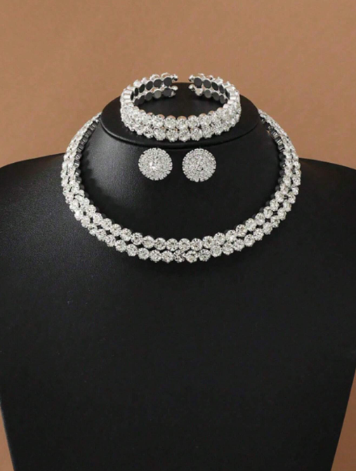 Conjunto de Collar, Pulsera y Aros con detalle de Zircon Fantasia Plateado Importados.