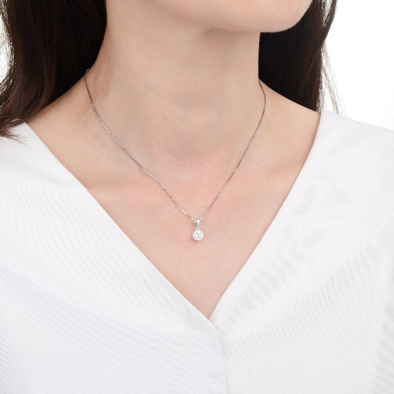 Dije con Cristal de Plata 925 Importado, Punto de Luz 5mm Zircon. Tiene aproximadamente 0.9 gramos