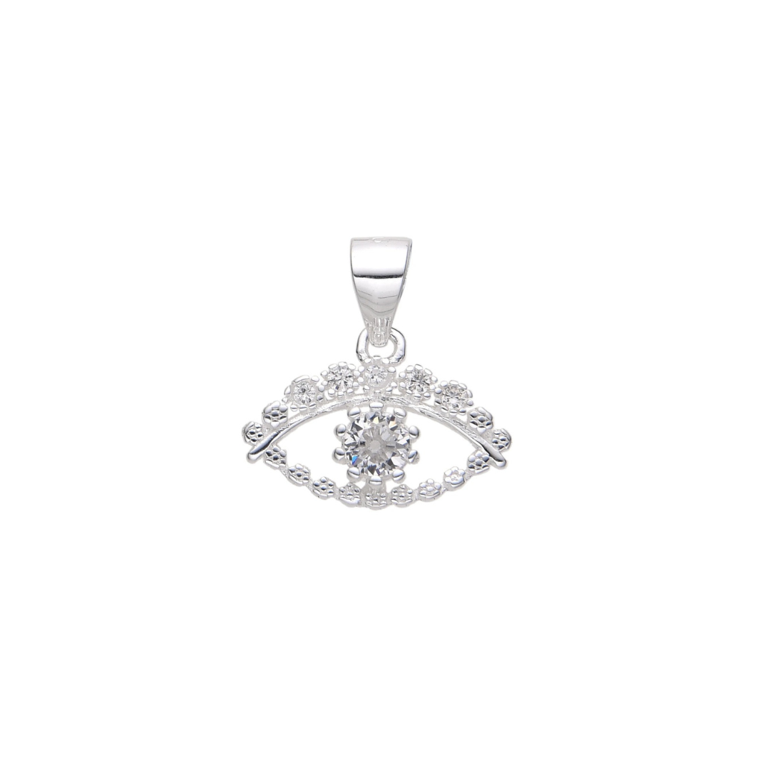 Dije con Cristal de Plata 925 Importado, en forma de Ojo Turco con detalle de Circones. Tiene alrededor de 12x10mm y pesa aproximadamente 1.1 gramos