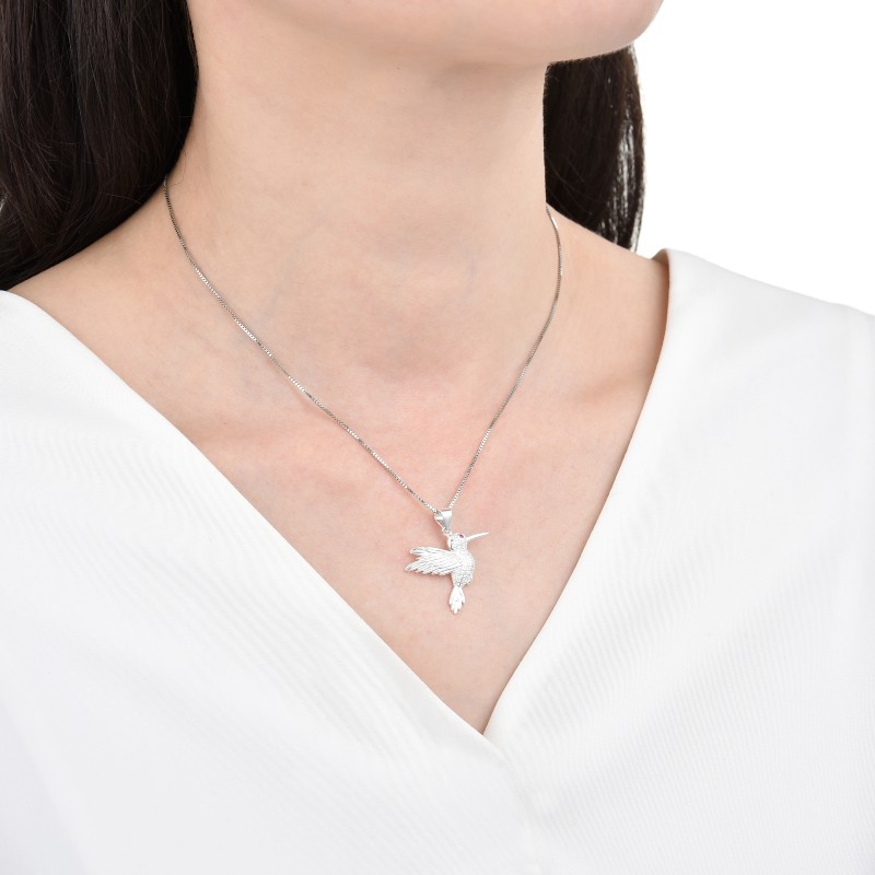 Dije con Cristal de Plata 925 Importado, Colibri con detalle de Zircon. Tiene alrededor de 30mm y pesa aproximadamente 1.8 gramos