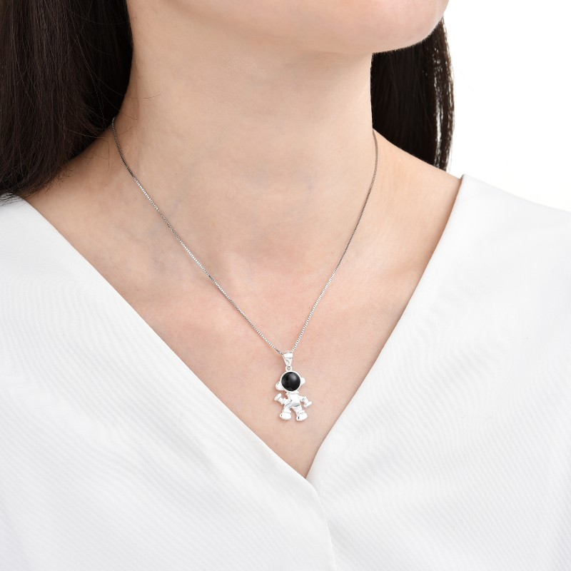 Dije con Piedra de Plata 925 Importado, en forma de Astronauta. Mide aproximadamente 30x20mm y pesa alrededor de 2.3 gramos