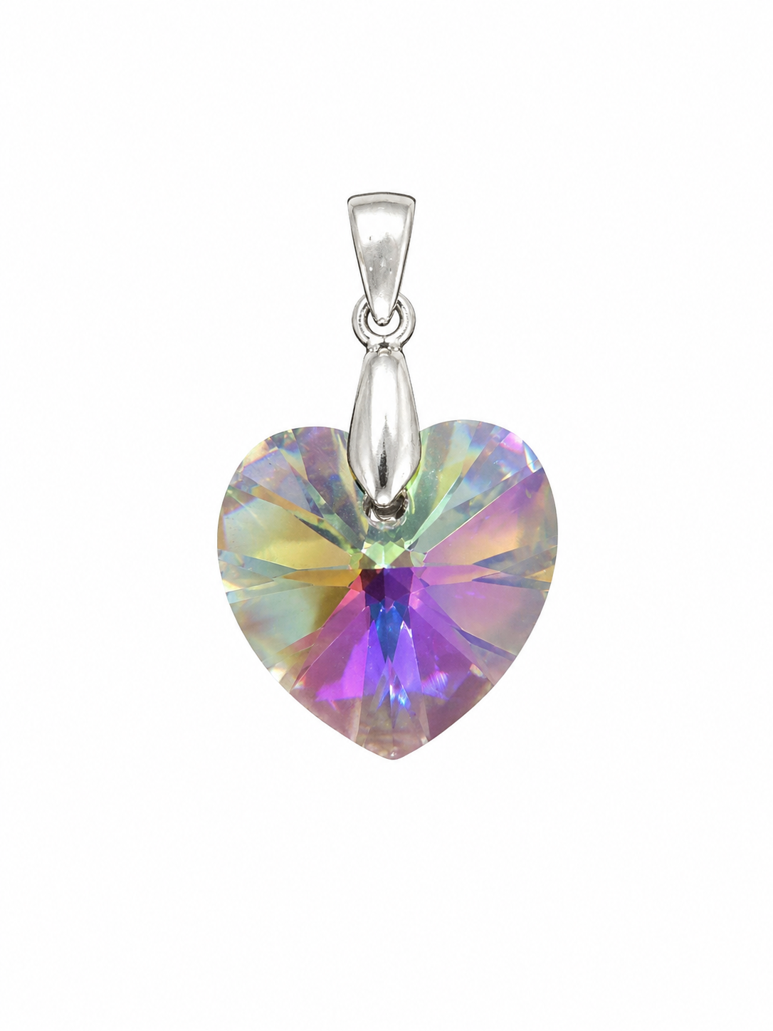 Dije Cristal Swarovski de Plata 925 Importado, Corazon 14mm Lavender Crysolt