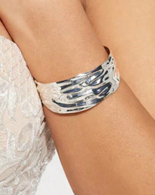 Esclava Rigida Fantasia Plateado, mide alrededor 60mm.