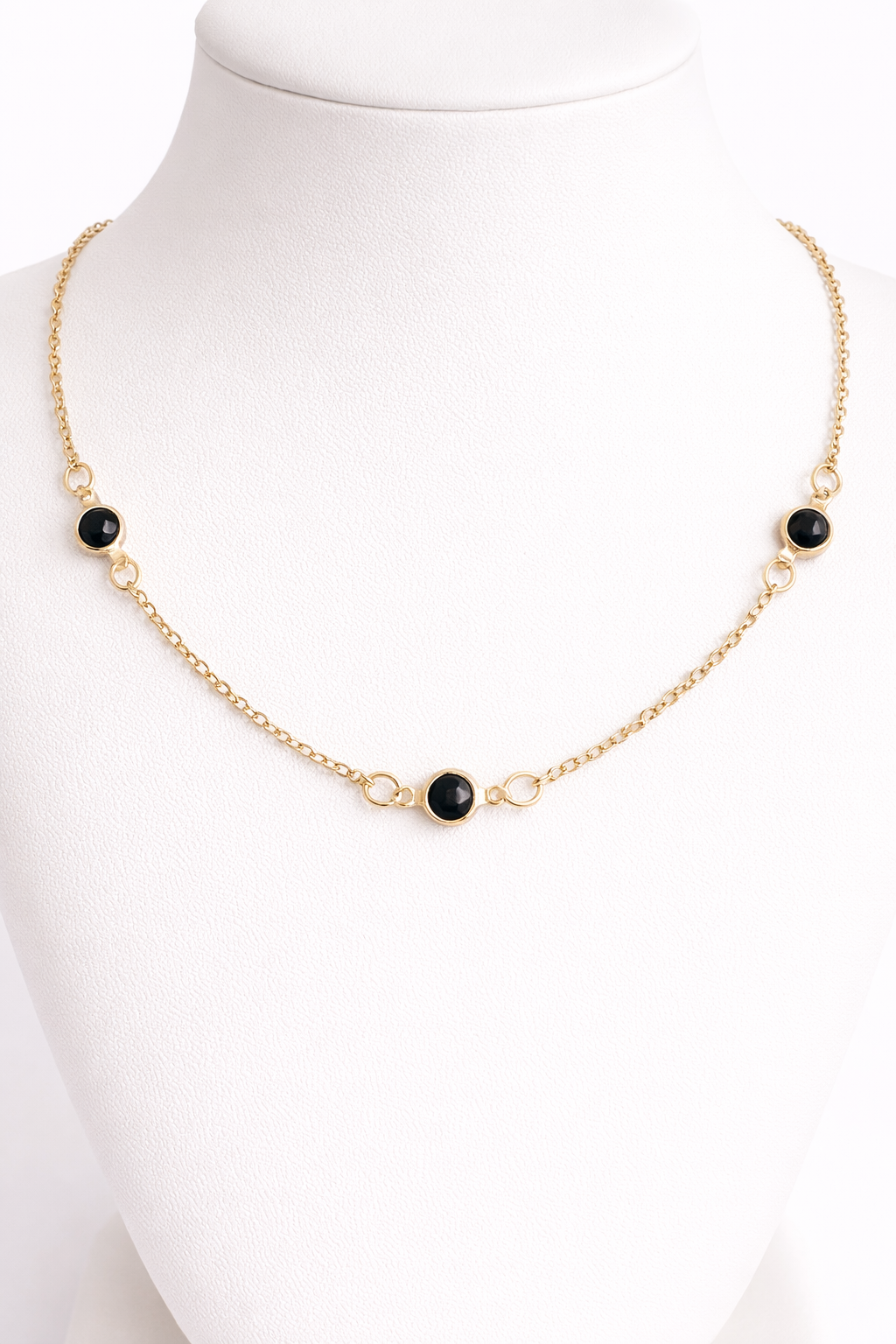 Gargantilla Acero Dorado con Punto de Luz Negro Importados, mide 50cm a 54cm