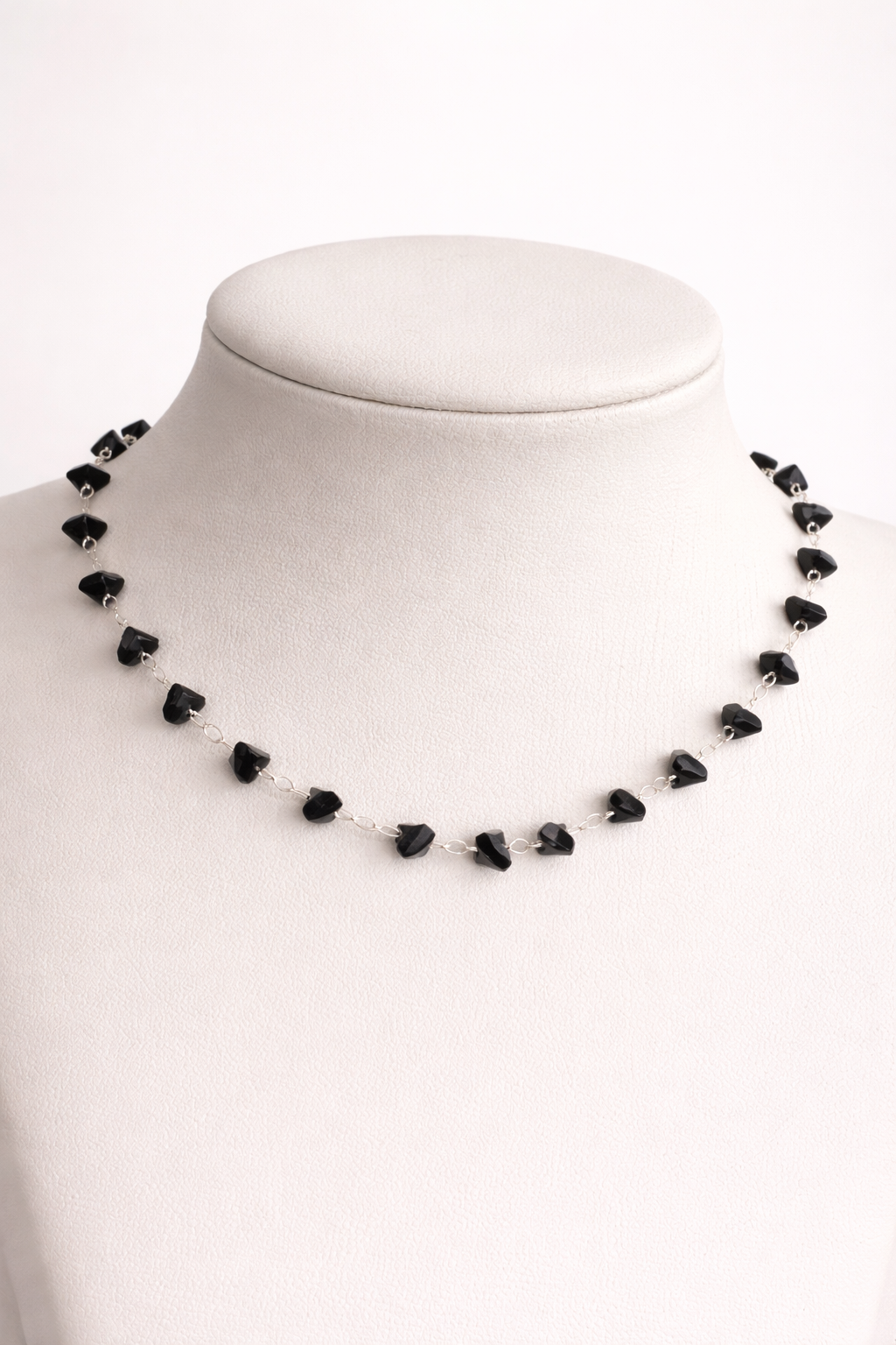 Gargantilla Acero Plateado con Cristal Negro Importados, mide 32cm a 46cm