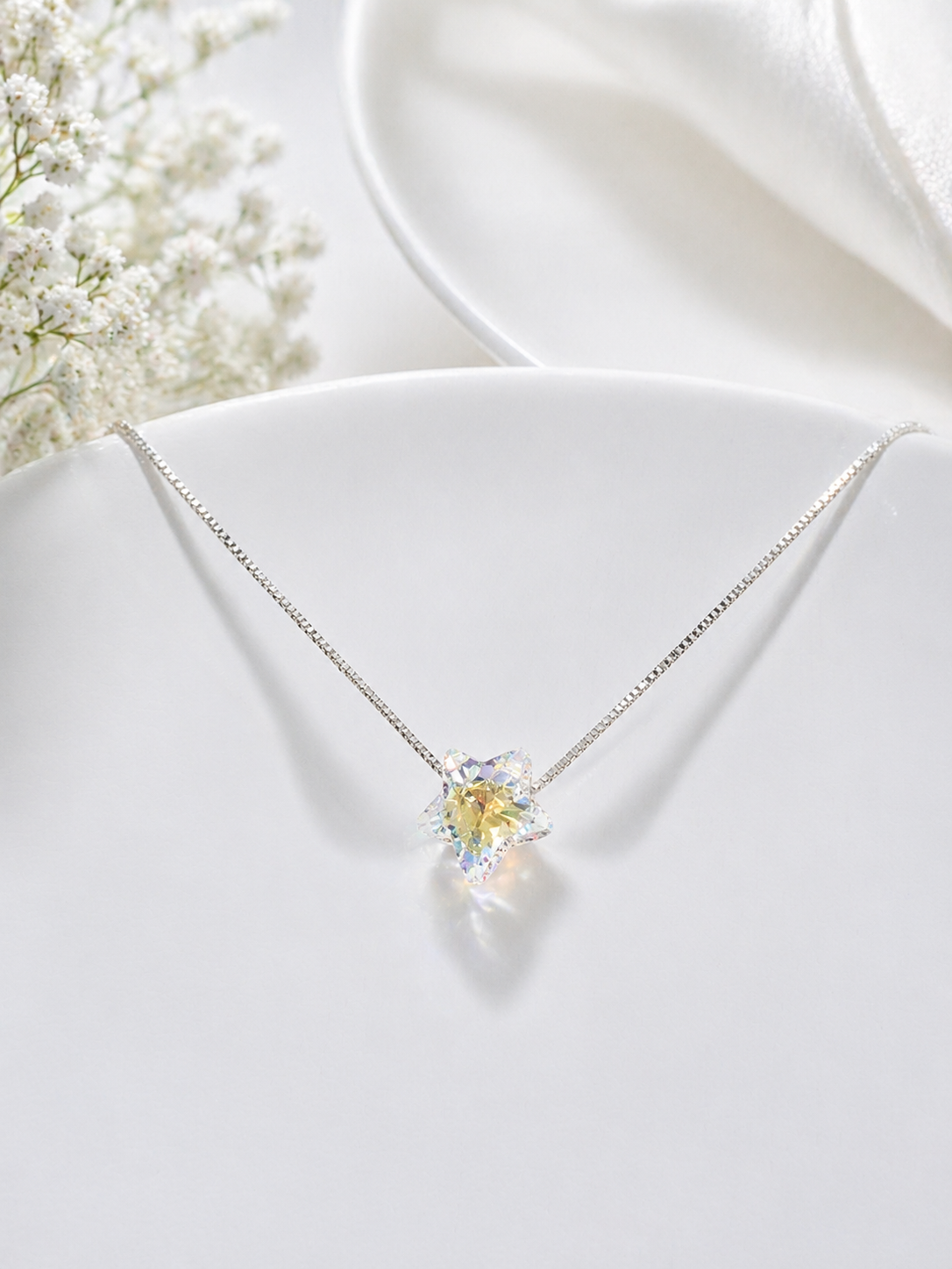 Gargantilla con Cristal Swarovski de Plata 925 Importados, con Estrella 12mm. Mide aproximadamente 40cm con extensión a 45cm