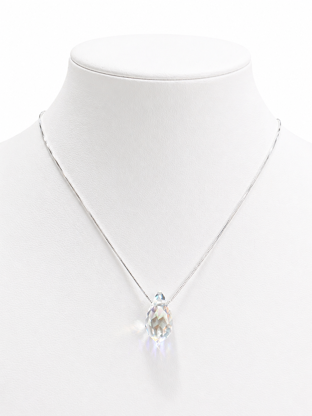 Gargantilla con Cristal Swarovski de Plata 925 Importados, con Gota AB 15x9mm. Mide aproximadamente 40cm con extensión a 45cm