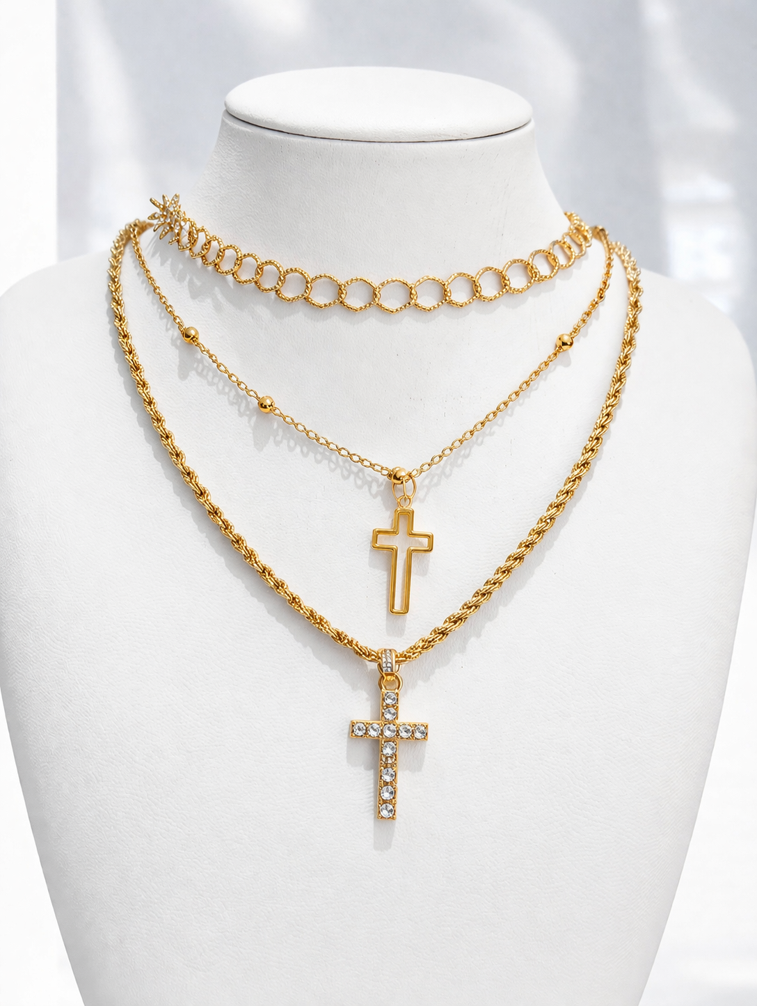 Gargantilla Triple Fantasia Dorado con detalle de Zircon Importados
