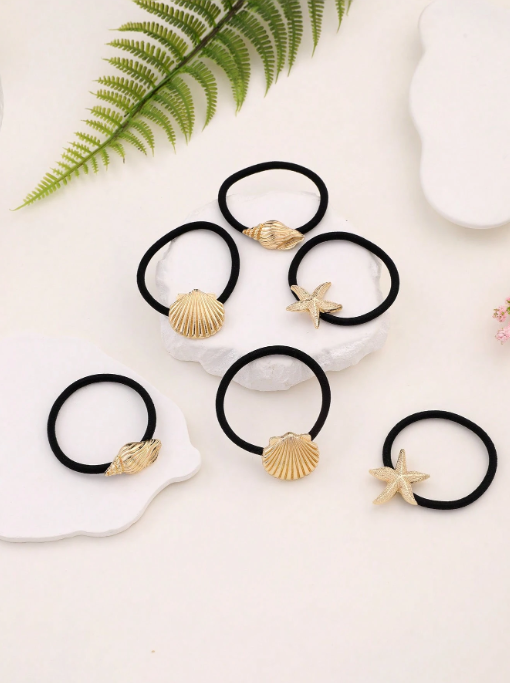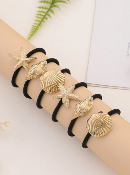 Gomita Elastica con detalle de Dije Metalizado Marino en Dorado. Ideal para gente con bastante cantidad de cabello.