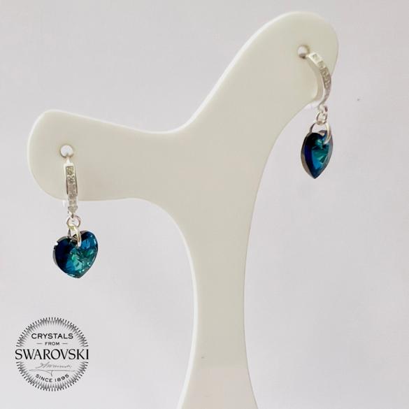 Huggies 12mm de Plata 925 Importado, con detalle de Zircon y dije Corazón Swarovski 10mm