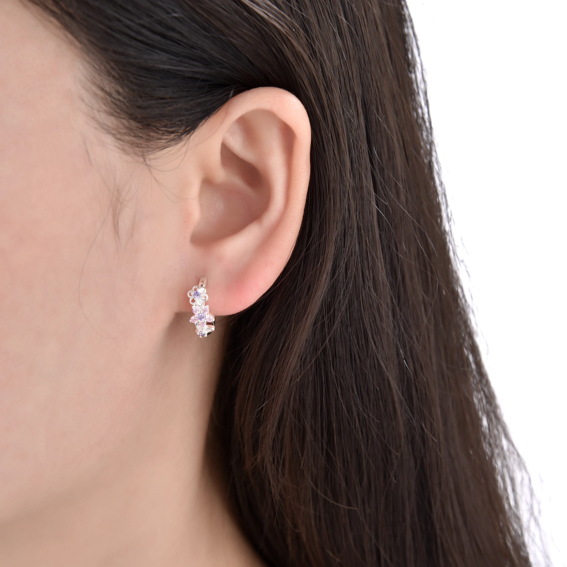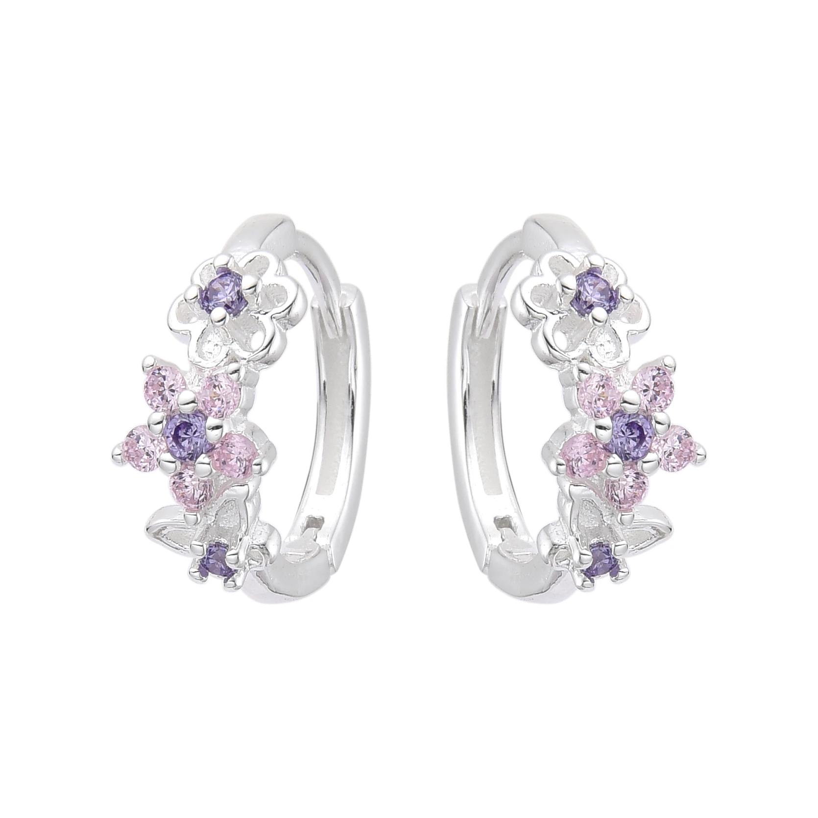 Huggies 14mm Cristal de Plata 925 Importados, Flores con detalle en Tonos Pasteles. Tiene aproximadamente 2.2gr