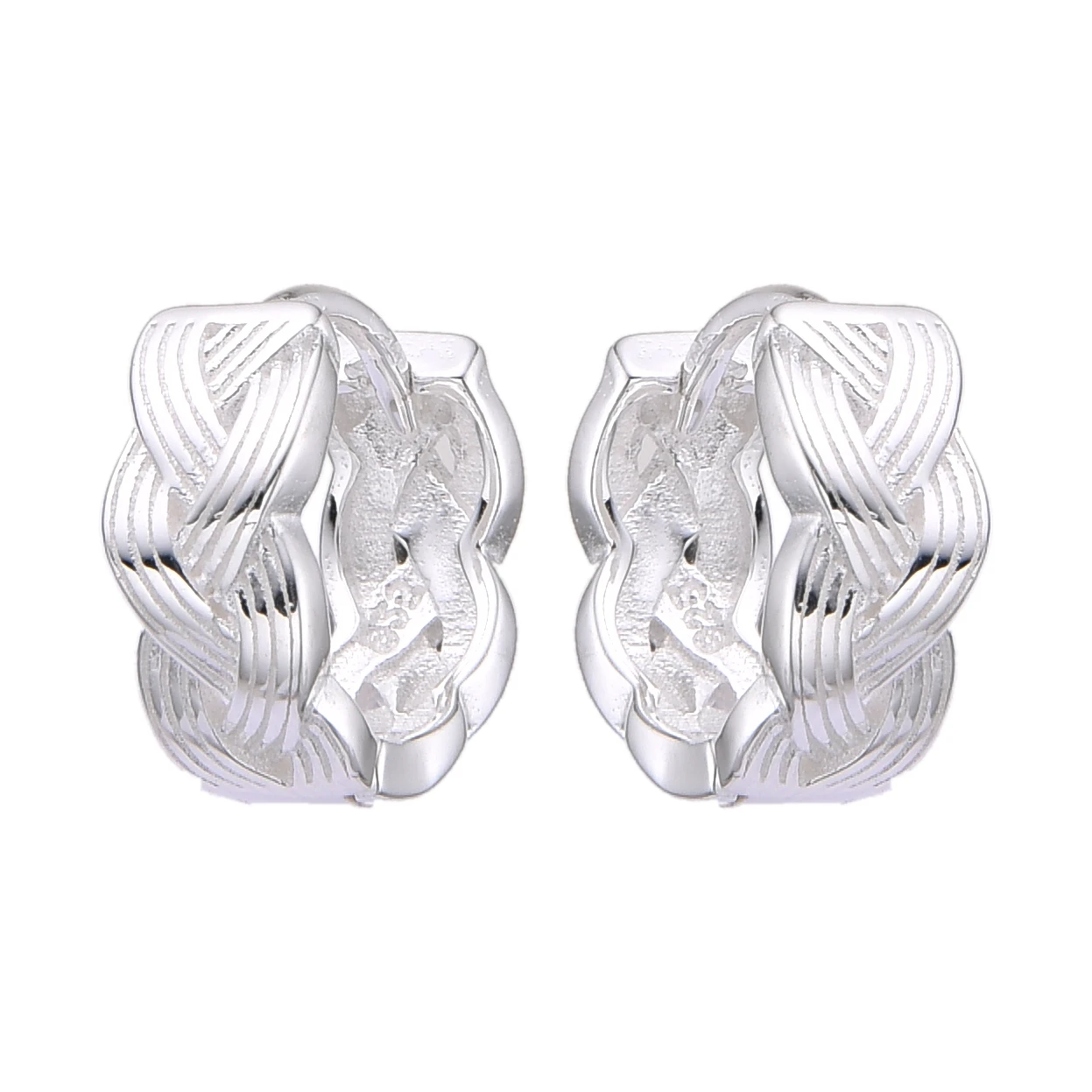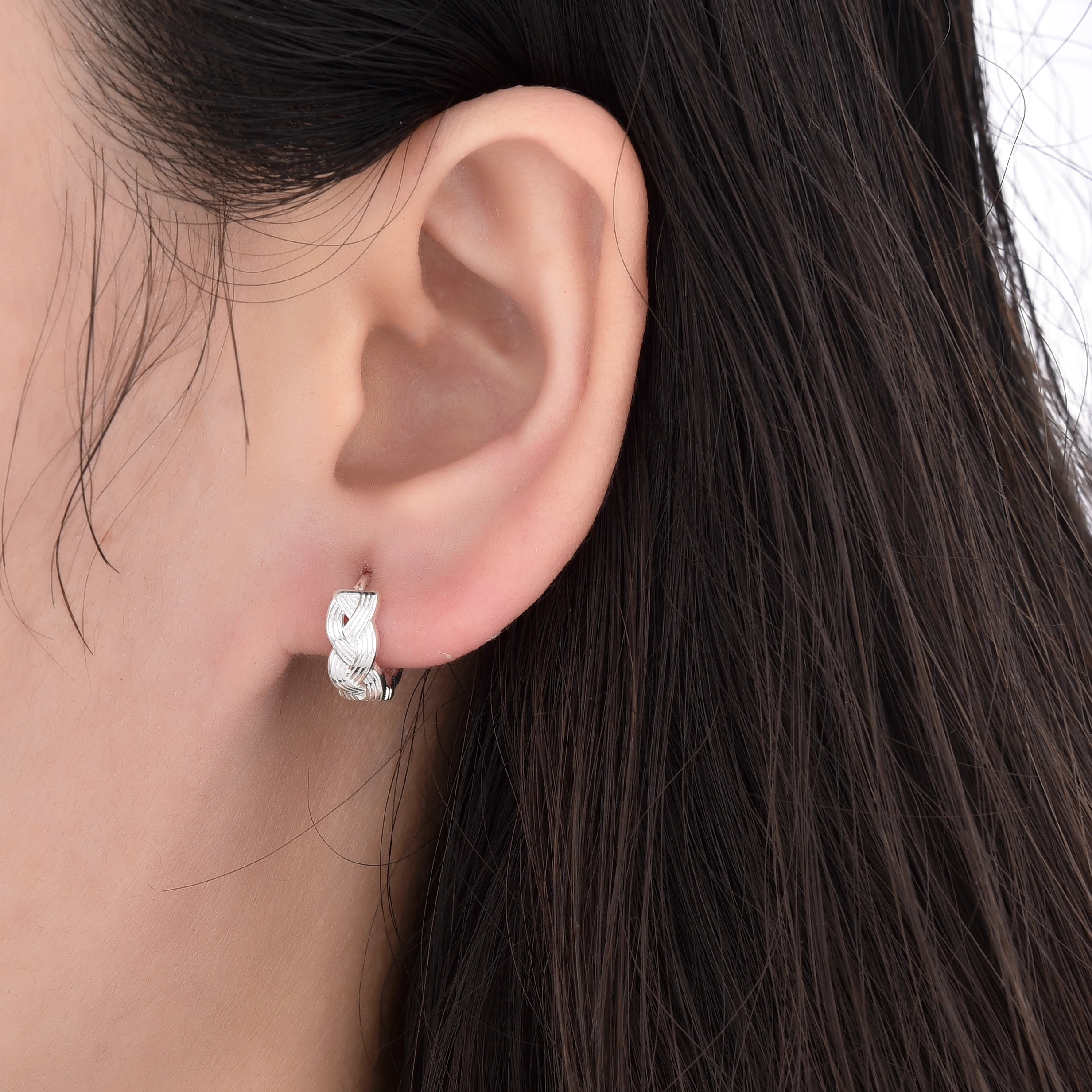 Huggies Liso 12mm Plata 925 Importado, con detalle de Entrelazado. Tiene aproximadamente 2.8 gramos.