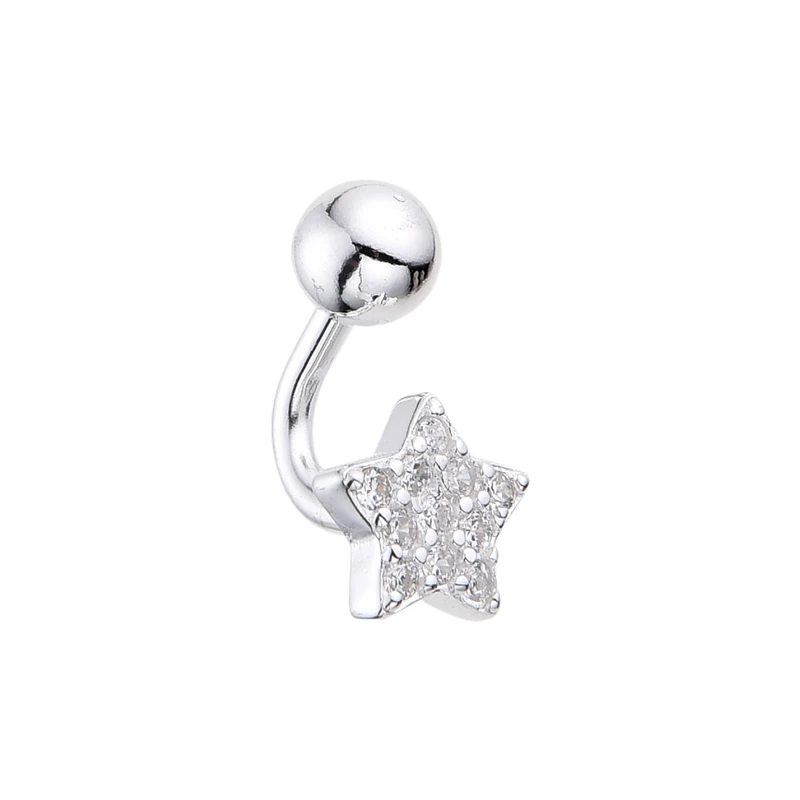 Piercing con Cristal de Plata 925 Importado, con forma de Estrella con detalle de Zircon para el Ombligo. Tiene alrededor de 1.4 gramos