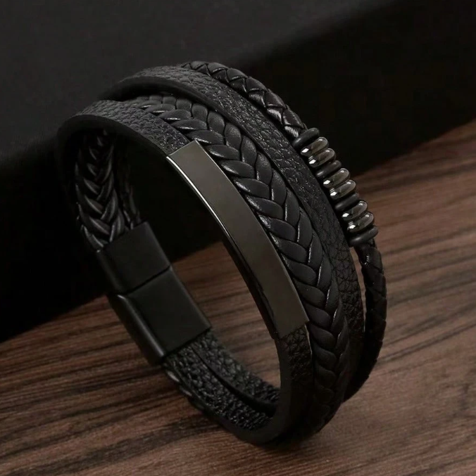 Pulsera Hombre de Cuero con detalle de en Acero Negro